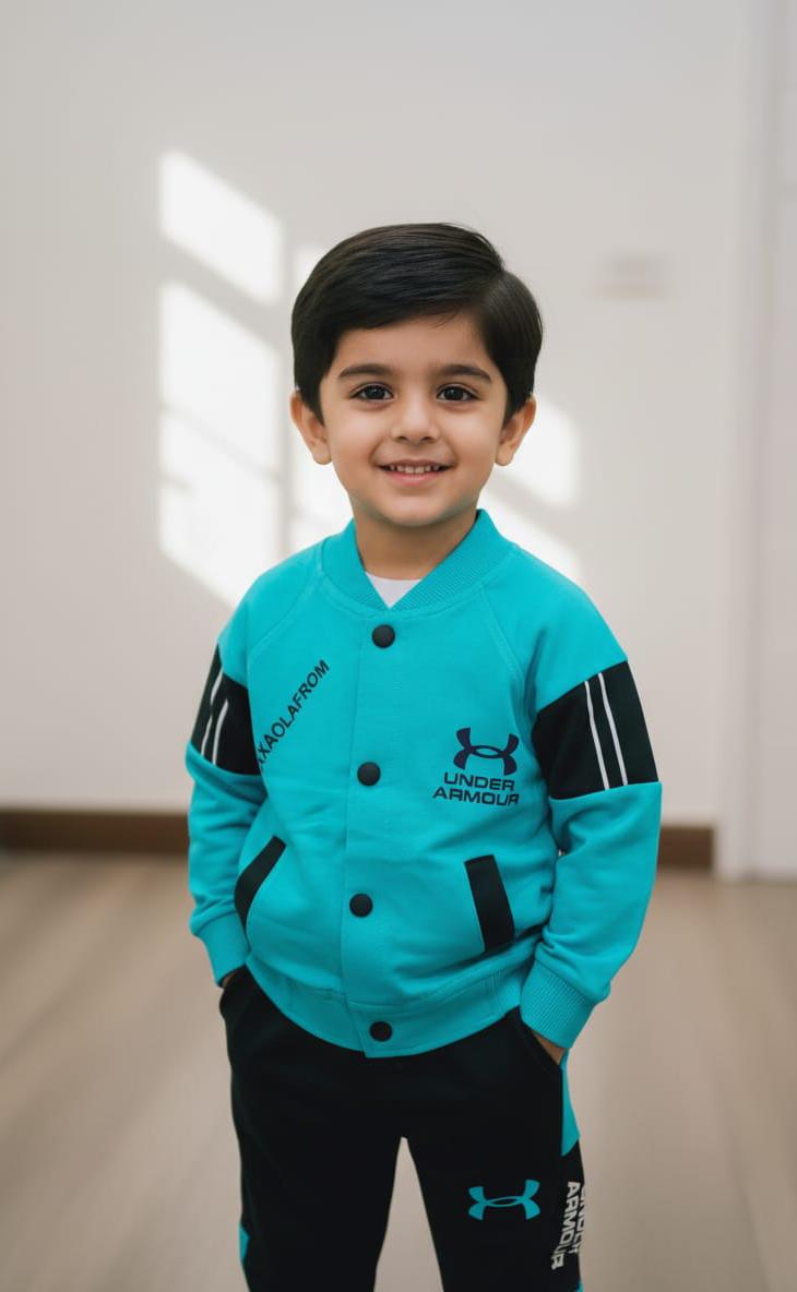 This sophisticated boys’ outfit features a rich blue buttoned upper with a soft, cozy inner layer, paired with matching black trousers for a sharp, polished look. Crafted from premium, breathable fabric, it ensures comfort and ease of movement while maintaining a formal and stylish appearance. Perfect for family gatherings, special occasions, or formal events, this set combines elegance with practicality.