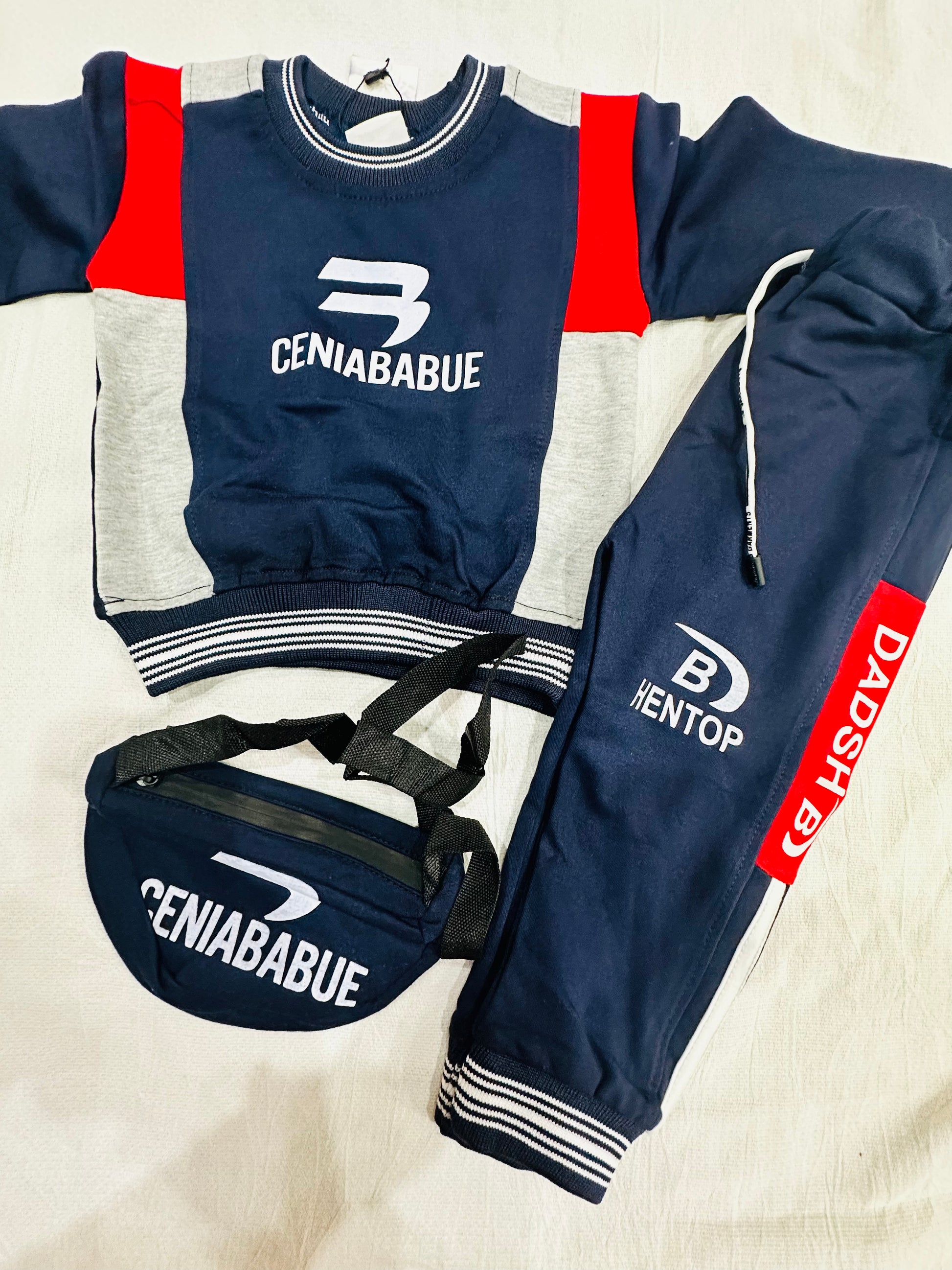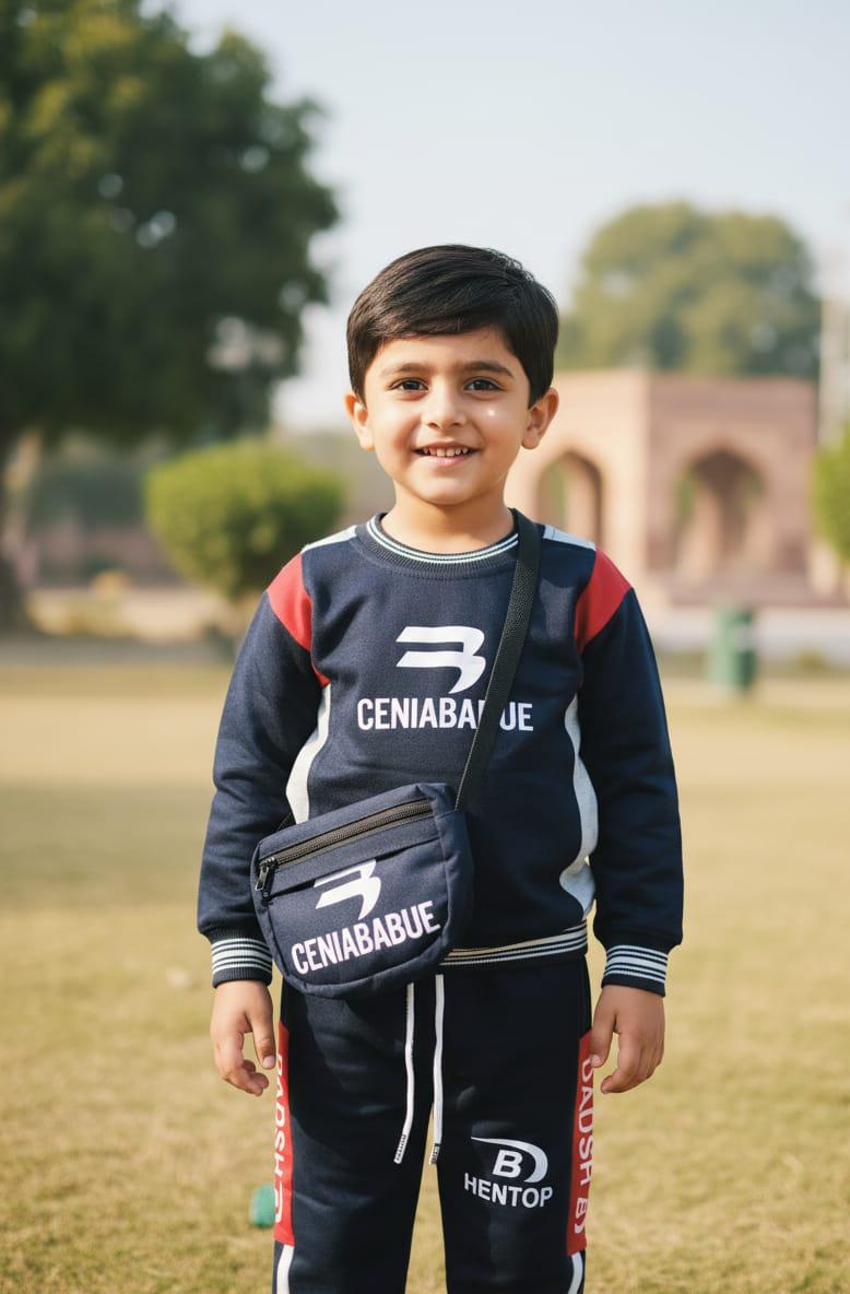This stylish boys’ blue tracksuit set is designed for comfort, movement, and a sporty look. Made from soft, durable fabric, it is perfect for active days, outdoor play, and casual wear. The vibrant red color gives a bold and energetic feel, while the comfortable fit allows easy movement throughout the day. The set comes complete with a matching bag, making it both practical and fashionable—ideal for school, sports, or outings.