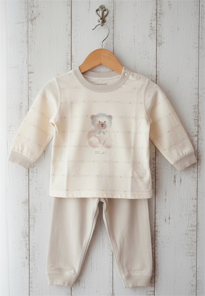 Wrap your little one in pure comfort with our Creamy Snuggle Bear Set. This Korean imported two-piece outfit is designed with ultra-soft, delicate fabric that feels gentle on baby’s sensitive skin. The adorable teddy bear print adds a sweet, cozy touch, while the breathable material ensures all-day comfort. Perfect for lounging, naptime, or casual outings, this set combines minimal Korean style with everyday practicality. A must-have for your baby’s soft and soothing wardrobe.