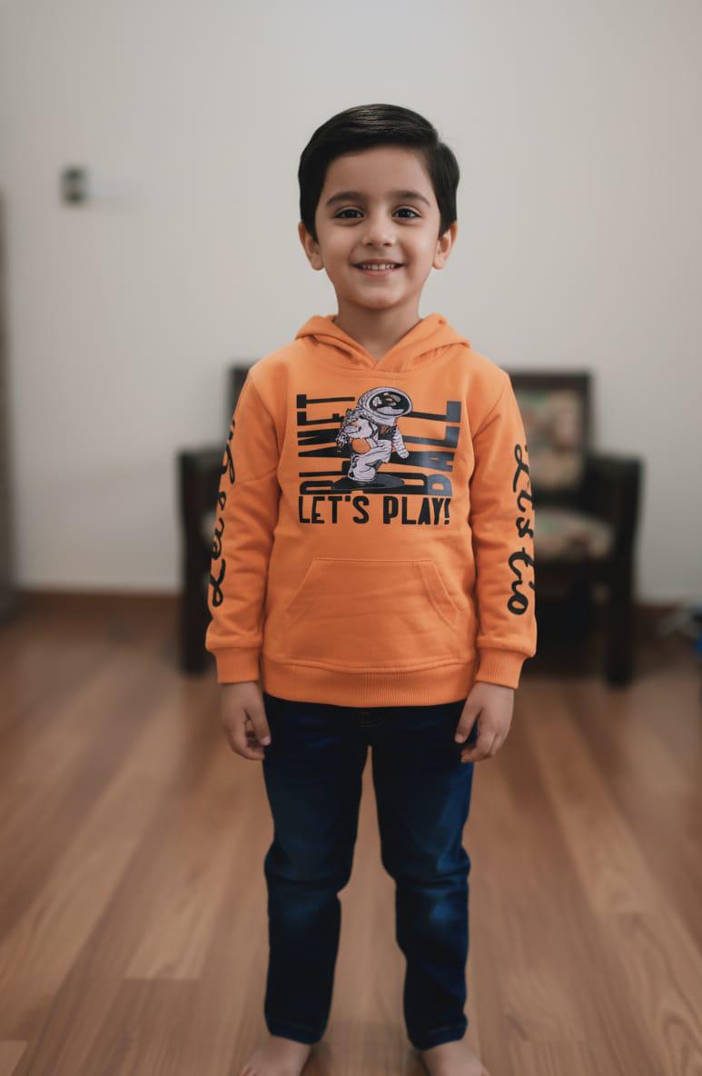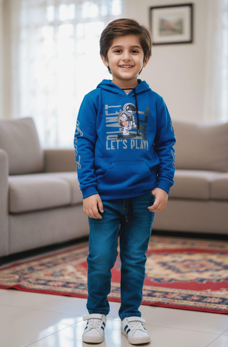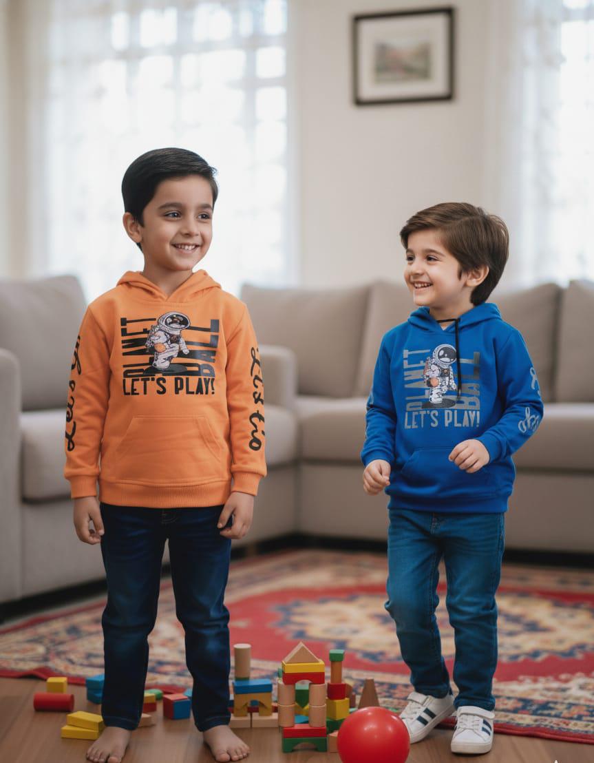 This trendy boys’ hoodie set features a stylish orange and blue hoodie paired with comfortable blue pants, creating a bold and modern look. Made from soft, breathable fabric, it provides warmth and comfort for everyday wear while allowing easy movement for active kids. The vibrant color combination adds a sporty edge, making it perfect for casual outings, playtime, and mild-weather seasons. Designed with a relaxed fit and cozy feel, this set is both fashionable and practical for boys.